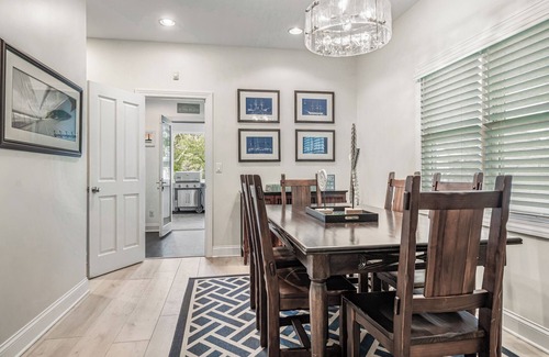 Step outside and embrace the charm of this home’s outdoor spaces! Start your day with a cup of coffee on the front porch, rocking away as the neighborhood stirs to life. Later, enjoy a soak in the private hot tub or rinse off in the outdoor shower after a day at the beach. Tee up some friendly competition on the private mini putting green, perfect for golfers of all ages! Gather with loved ones around the fire pit for marshmallow roasting under the stars or simply relax in the spacious backyard, shaded by towering trees. A perfect mix of fun and serenity awaits you!