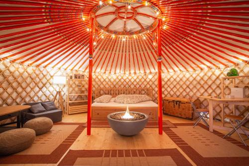 Jurta pod Kriváňom is located in Vavrišovo, just 11 miles from Aquapark Tatralandia and 13 miles from Demanovská Ice Cave. Private parking is available on site at this recently renovated property. On clear days, guests can head outside to enjoy the luxury tent's outdoor fireplace or simply kick back and relax. The luxury tent includes a fully equipped kitchenette with a fridge and kitchenware, as well as a kettle. Towels and bed linen are featured in the luxury tent. For added privacy, the accommodation features a private entrance. Continental and vegetarian breakfast options with fresh pastries, fruit, and juice are available every morning at the luxury tent. Guests can make the most of the warm weather with the property's barbecue facilities. Guests can also relax in the garden or on the sun terrace. Strbske Pleso is 23 miles from Jurta pod Kriváňom. The nearest airport is Poprad-Tatry Airport, 29 miles from the accommodation.