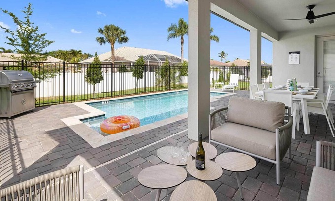 Dive into the sun-and-sea lifestyle with an unforgettable stay at this beachy-chic villa in Melbourne Beach, FL—only ~90 minutes to Orlando! Boasting an open-plan living/dining area, high-end kitchen, and private pool & patio, this spacious home is the perfect place to drop anchor. Exceptional amenities include an arcade loft, casino, in-home movie theater, and an undersea-themed kids’ room. What's more: it’s just steps from the beach and a short drive to Cape Canaveral & Disney World!