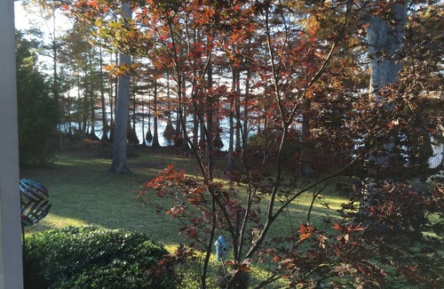 The living room provides comfortable seating and includes Satellite TV, DVD Player and a beautiful view of the lake.