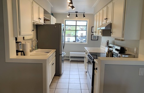 At the end of the day, fry up your catch in the full kitchen or try your hand at BBQing it on the charcoal grill. If the weather is nice, you can dine on the porch or fold up the table and bring it lakeside!