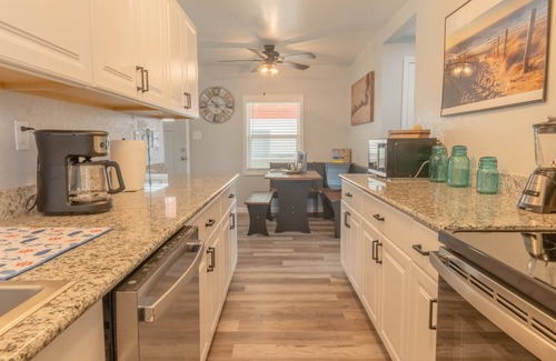 This property has been 100% completely remodeled in 2023. Brand new electrical, Central Air / Heat, sheetrock, flooring, bedding, furniture, appliances, etc... and features 3 spacious bedrooms (1 ensuite), 2 full restrooms, fun coastal contemporary decor, comfortable beds & furniture, and most of all is available at a very affordable rate.