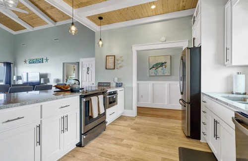 This popular direct beach access vacation rental has just been completely renovated! I-Land Style is 4 br 2 ba oceanfront vacation home on Edisto Beach, SC, close to restaurants and grocery store. This 4 bedroom, 2 bath coastal home is located on 5 miles of shell strewn beach overlooking the Atlantic Ocean allowing you to enjoy incredible sunrises and moonrises from almost every room in the home. The large kitchen with solid surface cooktop opens to the living and dining area and is perfect for cooking your favorite low country cuisine.