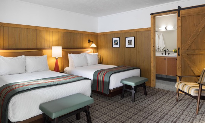 With the perfect balance of adventure and relaxation, our lodge-style retreat is where modern amenities meet the rustic charm of the great outdoors. This spacious room offers the perfect ambiance after a day of adventure! Kick off your boots and enjoy our lively saloon, unwind by the cozy fire pits, or take a refreshing dip in the all-season pool. If you’re hankering for an authentic dining experience, mosey on over to our on-site restaurant for a night of hearty eats, cocktails, and toe-tapping entertainment. Whether it's the stunning landscapes or the vibrant lodge atmosphere, every moment here is unforgettable.