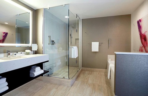 JW Marriott Minneapolis Mall of America offers 342 air-conditioned accommodations with safes and complimentary newspapers. Beds feature premium bedding. 55-inch Smart televisions come with premium satellite channels, pay movies, and Netflix. Refrigerators and coffee/tea makers are provided. Bathrooms include separate bathtubs and showers with deep soaking bathtubs, complimentary toiletries, and hair dryers.