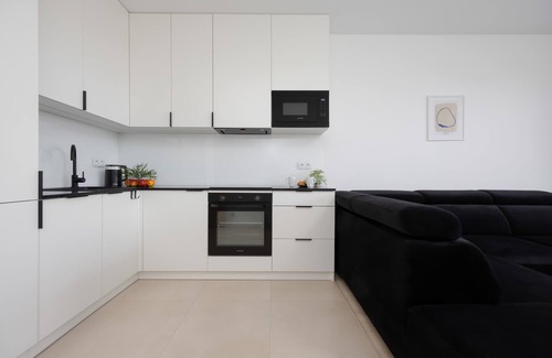 Located on the fifth floor of a modern building, this apartment is a comfortable space for up to six people, ideal for a family trip or a stay with friends. It is distinguished by its elegant design in light, neutral colours and carefully selected furnishings, which promote relaxation in high standard. Guests have at their disposal two separate bedrooms – one with a spacious double bed, the other with two single beds – and a comfortable double sofa bed in the living room. The spacious living room connected to the kitchenette is a place where you can spend time together over meals or relax in front of the SmartTV. The fully equipped kitchenette offers all the necessary appliances, including a hob, oven and dishwasher, allowing you to prepare meals in the comfort of your own home. Two private balconies are a unique feature of the apartment – perfect for morning coffee with a view of the city skyline or a moment of respite at sunset. The modern bathroom with a shower has been designed with the comfort of users in mind – fresh towels, a set of cosmetics and a functional washing machine are available, which is particularly useful during longer stays. The whole is complemented by fast WiFi, air conditioning and elegant interior design, which make this apartment an excellent base for exploring Warsaw in the highest standard.