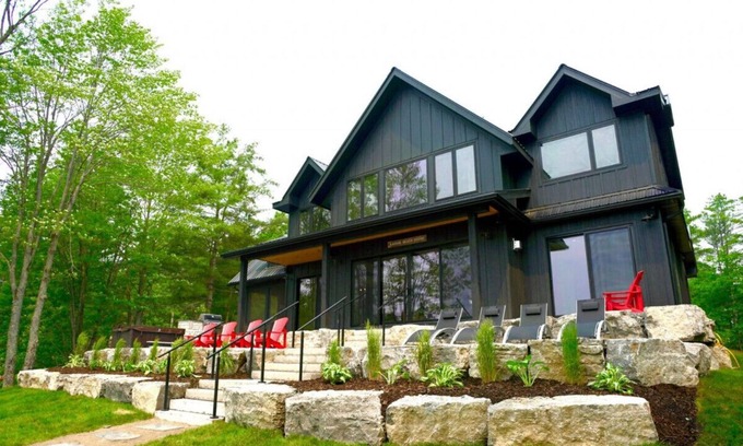 Brand new, fully customized cottage explicitly built for rental purposes with over 5500 sq ft of living space, including a brand new boat house with living quarters on the second floor that is on the water's edge. This custom cottage features floor-to-ceiling glass that leaves you feeling like you are living on top of the water. Open concept with a new Chef's Kitchen, and a spacious living room with incredible lake views. Dining can be accomplished indoors at our 9' rustic wood table or outdoors in our screened-in Muskoka room that is steps away from the kitchen. Other amenities include ice-cold air conditioning, High-Speed Bell internet, a 75" Smart Television in the living room, a 100" movie theatre, a games room, a gym and best of all a golf simulator. Sonos is provided for your indoor and outdoor audio entertainment. The master bedroom is complete with a king-size bed, a fully equipped ensuite and a workstation, it also offers a surreal view that you will need to see to appreciate. At night utilize our motorized TV Mount, for added entertainment and privacy right from your bed. Kahshe Beach House was built to house your entire family, which is why we offer two additional Master Bedrooms, both also equipped with ensuites for both privacy and convenience. The first is right off of our main floor for easy access right next to our open-concept living room. The second is in our boat house, on the second floor where the view couldn't get any better!
