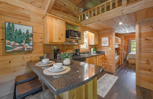 Welcome to Kai Cabin at Wauhatchie Woodlands, a Timberroot Rustic Retreat. During your stay, you will have access to a range of amenities, including a private hot tub, furnished back deck, shared fire pit, covered front porch with a charcoal grill, and a charming space surrounded by nature. Kai Cabin sleeps up to six guests and features a main bedroom, built-in bunk beds, and a sleeping loft and is equipped with everything you need to make the most of your time in Chattanooga.