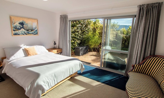 Kaiteriteri Retreat is warm, quiet, and ideal for couples seeking a tranquil retreat or an adventure-filled getaway. With its prime location, you're perfectly positioned to explore the breathtaking Abel Tasman National Park, renowned for its walking tracks, kayaking, and stunning coastal scenery.