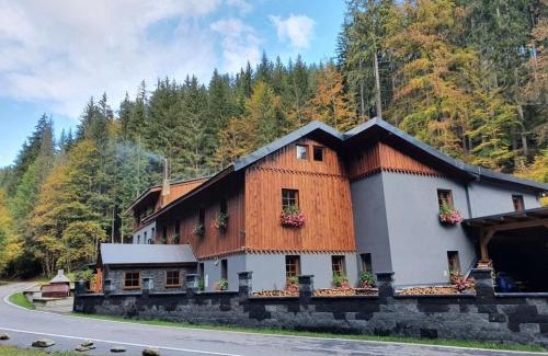 Kamenný Mlýn in Strážné provides accommodations with a garden, a terrace, and a bar. Among the facilities of this property are a restaurant, private check-in and check-out, and a tour desk, along with free Wifi throughout the property. There's free private parking, and the property offers paid airport shuttle service. At the guest house, all units include a desk. At the guest house, the units come with a private bathroom and bed linen. A buffet breakfast is available at the guest house. As an added convenience, Kamenný Mlýn offers packed lunches for guests to bring on excursions and other trips off-property. The area is popular for skiing and cycling, and bike rental is available at this 3-star guest house. Ski storage space is available on-site and hiking can be enjoyed close to the accommodation. Bus Stop Strážné is 2.5 miles from Kamenný Mlýn. Pardubice Airport is 60 miles away.