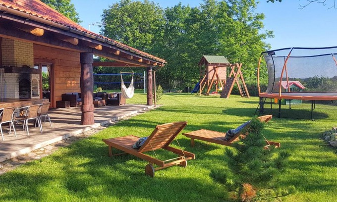 Providing a garden, Kamionka House - Dom z Bala provides accommodations in Biskupiec. This beachfront property offers access to a balcony, free private parking, and free Wifi. On clear days, guests can head outside to enjoy the vacation home's outdoor fireplace or simply kick back and relax. Featuring a terrace and garden views, the spacious vacation home includes 5 bedrooms, a living room, satellite flat-screen TV, an equipped kitchen, and 2 bathrooms with a walk-in shower and a bath. Towels and bed linen are offered in the vacation home. There's also a seating area and a fireplace. For those times when you'd rather not eat out, you can cook on the barbecue. For guests with children, the vacation home features outdoor play equipment. Snorkeling and canoeing can be enjoyed nearby, while a private beach area and water sports facilities are also available on-site. Święta Lipka Sanctuary is 27 miles from Kamionka House - Dom z Bala, while Olsztyn Stadium is 29 miles from the property. Olsztyn-Mazury Airport is 28 miles away.