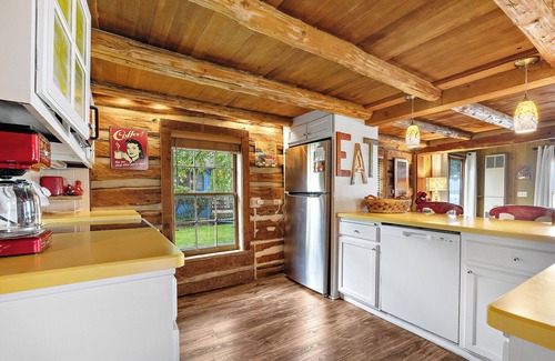 This 1910 fully restored log cabin retreat offers 2 bedrooms, 1 bathroom, a main living space with pull-out couch, a fully stocked kitchen and multiple outdoor patios. We allow up to 2 well-behaved dogs. There is an additional fee collected at booking.