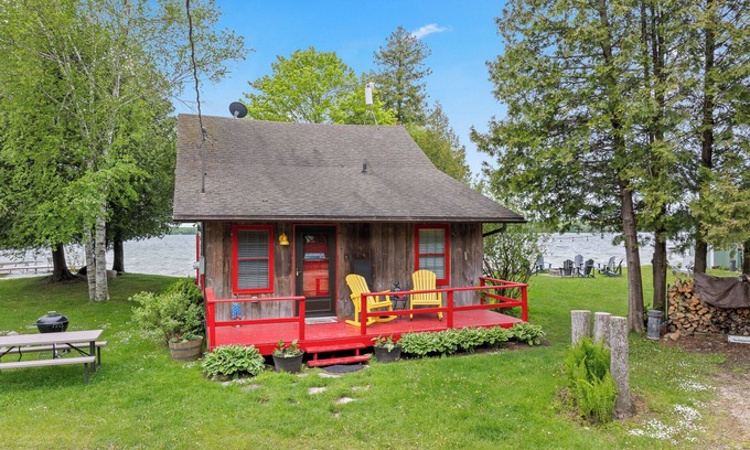 The seasonally installed dock accommodates guest's boats, with a nearby boat launch. The pier also provides a stunning view of sunsets. Guests will also enjoy shared amenities such as a fire pit with chairs and firewood, green space, sand box and swing set.