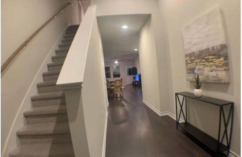 Soak up the Zen charm of this 2020 newly built home. 2 living rooms (upstairs and downstairs). Entertainment includes professional karaoke system, 3 smart tvs, sound speakers, watercolor paints, XXL sectional, shaved ice machine, and back yard patio. We are near to Samsung, Apple and Dell. Domain and downtown about 15 mins away. Walking trails walking distance, neighborhood pool, and dog park across the street. You will LOVE staying here with your family!