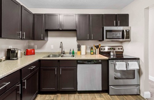 Discover comfort in our modern apartments right on the bank of the St. Joseph River, ideal for vacations or extended stays. Enjoy fully-equipped kitchens, high-speed Wi-Fi, an inviting seasonal pool, and proximity to South Bend's lively attractions. Our tech-enabled apartments offer self check-in at 4pm, 24/7 guest support by text, phone, and a Virtual Front Desk accessed via mobile device.
