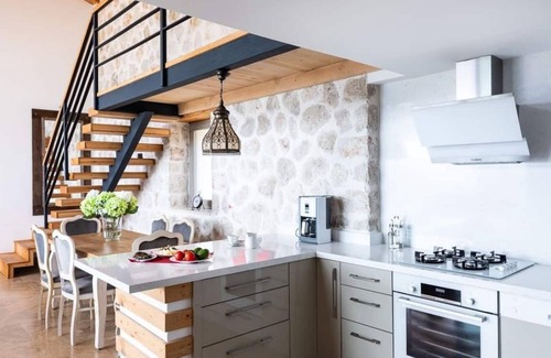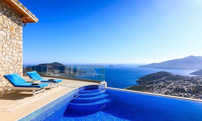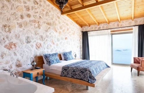 Kaya Tas Evi has a great sea view and enough place for 6 person. The Villa have a beautiful infinity pool outside with a section of a depth of 60 cm for kids, heated indoor pool and a romantic jacuzzi in one of the bedroom.