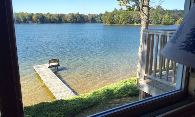 2 bedroom 1 bath on 300 feet of private lake frontage. Log burning fireplace, on site laundry. Large living room with open concept to kitchen and dining. Enjoy the lake view from the separate sun porch that leads to a large deck with gas grill.
