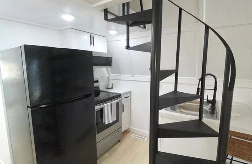 Completely renovated A-frame cottage has the feel of lake life but with modern flair. Each room has it's own cozy charm. A queen size bed on the main floor with your own tv for late night enjoyment. The upstairs has another bedroom with a full-size bed and a separate loft for the kids (or adults), perfect for reading, board games, or just relaxing. A spacious living room with open an open ceiling to the loft, large tv, and leather couch that folds out into an additional full-size bed. A nice kitchen including a large fridge, stove and oven, microwave, and breakfast nook complete with a coffee maker! Recently added - free laundry room for guest's use!