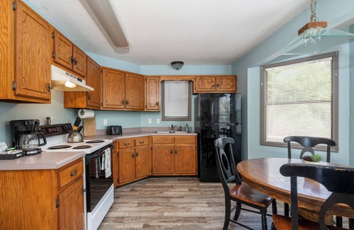 Kiwanie Lodge is a beautiful duplex style cabin nestled along the shores of historic Lake Kiwanie. This property boasts the largest lot on the lake with a large area of easily accessible waterfront. Take in the views on our large wraparound deck. Explore the lake in one of our provided kayaks. Enjoy central, convenient access to all local amenities including: grocery stores, restaurants and nightlife. Not captured in current photos are extensive updates to the property to include a brand new wraparound deck with covered area, stairs down into the back yard for easy access, brand new kitchen and flooring.