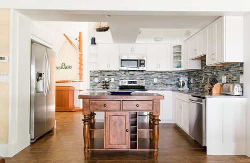 The Boat House has a full-size kitchen with granite counters and stainless steel appliances. There is a separate wet bar featuring an coffee maker, grinder, and frother plus a 2nd full-size refrigerator.