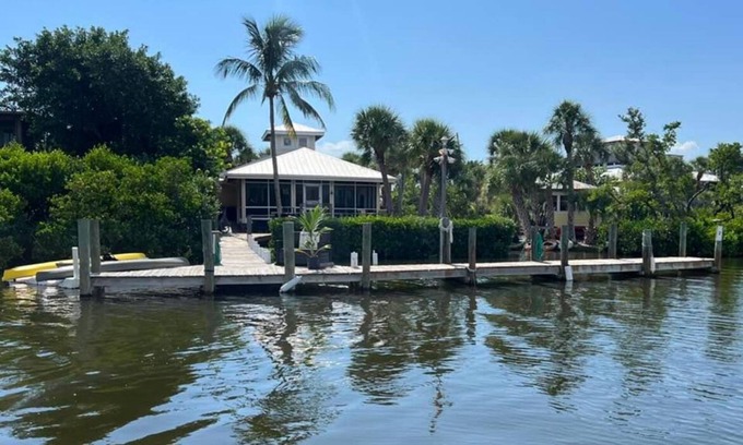 Located at the north end of the island, our 5+ acre resort-style "compound" (3 houses) extends from bay to beach and borders Don Pedro state wildlife preserve. The Boat House is situated right on Don Pedro Island Blueway Kayak Trail, and we provide kayaks for you to use to explore it! Enjoy the boardwalk that starts on the bay and winds through the mystical mangrove lagoons right to the Gulf of Mexico. This is a property like no other, designed with loving couples and small families in mind (optimized for four people).