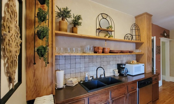 The Kees & Colburn Suite, named after the Cotton Mansion architect, is a fully furnished 3rd level apartment located in Cotton Mansion. The space has a full kitchen equipped with all the basic necessities and a large living room features a smart TV with Netflix, as well as a murphy bed for additional sleeping space. The bedroom is furnished with a King size bed and a designated workspace.