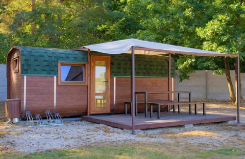 2-room mobile home. 1 room with 1 double bed and satellite TV. Kitchen-/living room (2 ceramic glass hob hotplates, kettle, microwave) with 1 x 2 bunk beds. Shower/WC. Heating, air-conditioning. Terrace furniture. Facilities: Internet (WiFi, free). Maximum 2 pets/ dogs allowed.