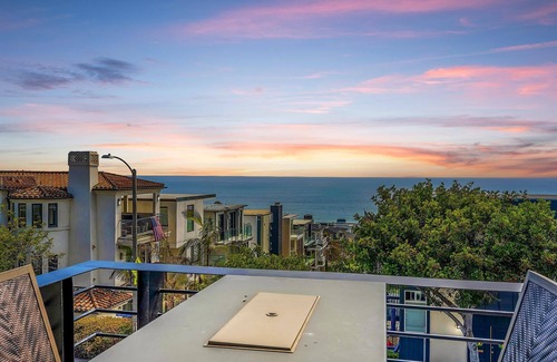 Escape to your perfect beach retreat in this stunning Manhattan Beach home, where every day feels like a vacation. Located on the highly sought-after 16th walk street, this spacious 6-bedroom, 7-bathroom home offers panoramic ocean views and breathtaking sunsets from Malibu to Palos Verdes, visible from most rooms. Enjoy the best of coastal living just two short blocks from the beach. Ride your bike along the Strand, swim, surf, play volleyball, or simply relax on the sand. This prime location puts you within easy walking distance to Manhattan Beach's top attractions, including boutique shops, world-class dining, and the Farmer's Market.