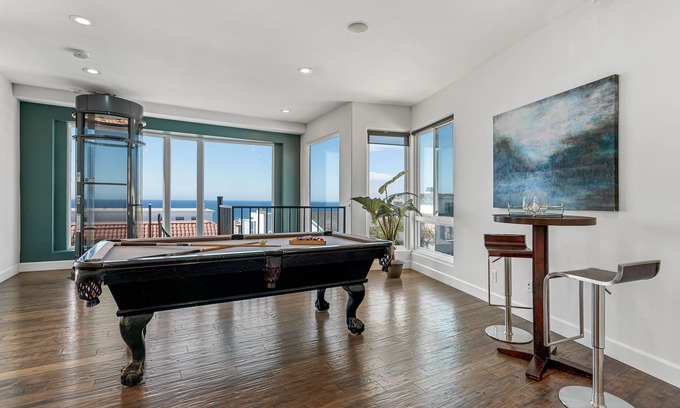 This stunning Manhattan Beach home features 6 beautifully designed bedrooms, each offering a serene and comfortable retreat. he expansive master suite features stunning ocean views, a private balcony, and a spa-like en-suite bathroom with a large soaking tub. Several bedrooms offer breathtaking ocean views and direct access to private balconies, ideal for enjoying the sea breeze and stunning sunsets. Every bedroom in this home combines luxury and functionality, ensuring a restful and memorable stay for all guests.