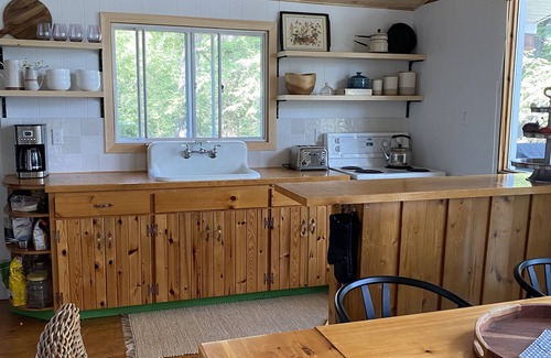 Our little slice of heaven is a four season, 800 sq ft cottage, with three bedrooms and a full size, west-elm sectional sofa bed to sleep any overflow guests.