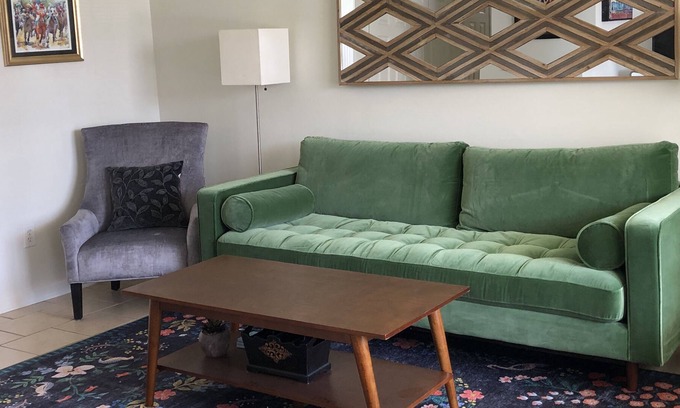Bluegrass Beauty in a super convenient location! Fully Furnished home near Keeneland and University of Kentucky. On the Bourbon Trail in Versailles Kentucky. Being just a short stroll to the quaint historic downtown, check out the numerous restaurants and amenities. With over 1300 sq ft , this home can sleep up to 6 people. It has been remodeled with eclectic style, freshly painted and comfortable furnishings. This home boasts 3 bedrooms, one full bath with tub shower, and large 1/2 bath off the primary bedroom. Relax in the gathering room or hang out in the large kitchen. Stainless steel kitchen appliances include a refrigerator, plus new dishwasher, stove, microwave, range hood and washer/dryer. You can rent this home for a long weekend, a week, a month or any other short term rental that meets your needs. Front porch sitting or back patio privacy, this home is a gem!