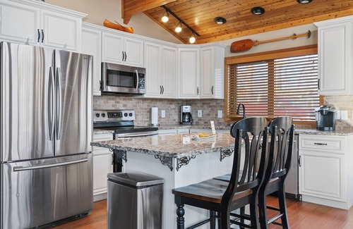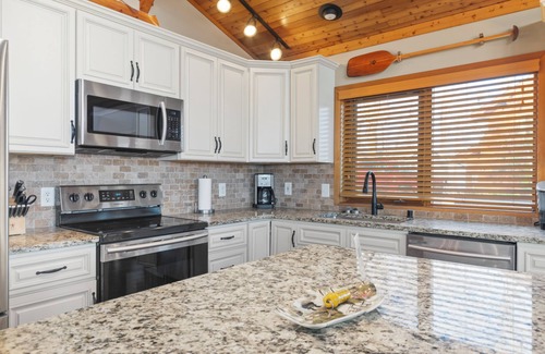 The kitchen is well equipped with everything you need for cooking including crock pot. pots, pans, griddle, plates, coffee maker, Keurig, toaster, etc...