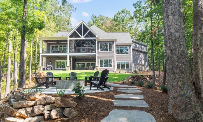 Escape to our exquisite lakeside haven, where modern design meets the tranquil beauty of Lake Keowee. Nestled amidst shimmering waters and lush surroundings, this spacious retreat that was built in the summer of 2023 sits on 2.5 acres and is tailored for a large family or group of friends seeking the ultimate peaceful lakefront getaway and is only 20 miles from Clemson University.