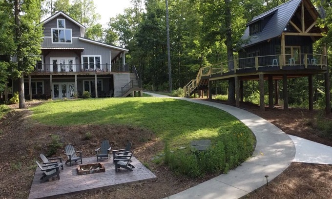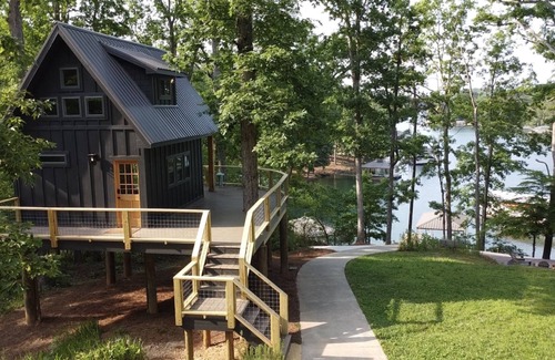 Perfect for generations of family, large groups, or even small business retreats any time of year, our home is situated on nearly 18 wooded acres on the south end of Lake Keowee. The beautiful post and beam barn-style main home was completed in 2018 and features three floors and over 4600 sq. ft of indoor space, and more importantly, HEAPS of outdoor living space including over 1800 sq. ft. of decks and porches. New for the 2023 season is our TREEHOUSE - designed and built by the woodworking artisans at Treehugger Customs. Perched high on the point and poised for stunning views of the lake, it features fun and funky indoor and outdoor space, and sleeps up to 4. Adjacent to the house and treehouse is our PUTTING GREEN by Heritage Synthetic Turf, and you'll also find nature trails meandering throughout our property. This is the place you've been looking for to switch-off, and relax and unwind with family and friends. Close to all the conveniences (grocery stores, restaurants, shops, and the hospital) and only a 20 minute drive to Clemson.