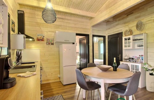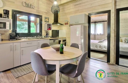 The vacation rental is a spacious chalet with all the necessary comfort for your stay. Arranged on one level, it offers a living room with fitted kitchen, living room and lounge. You will have 3 bedrooms (2 beds 160 x 200 - including 1 modular 2 x 80, and 1 bed 140), a bathroom and a separate toilet with washbasin. Outside, you will appreciate the large covered wooden terrace of 20m² with garden furniture as well as the gravelled courtyard for sunbathing. Three parking spaces are dedicated to you in front of the rental. The chalet is located in the Le Nounen residential park (under renovation), the setting is family-friendly. 20 minutes from the Gulf of Morbihan and the Atlantic Ocean and on the first foothills of the Landes de Lanvaux, Sulniac harmoniously combines the countryside, the proximity of the sea and the city. Browse the network of marked paths for hiking, horseback riding or mountain biking, and discover the remarkable heritage and the varied and wooded landscapes. From the chalet, a few minutes are enough to join the expressway and discover all the treasures of our beautiful department, land side as well as sea side!