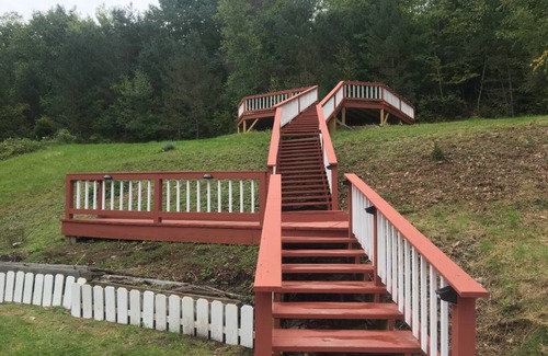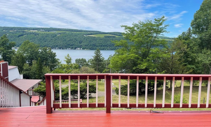 Relax with the whole family at this peaceful place to stay. Those who love hiking there is more than nine acres to hike up the hill or you can relax on our large deck and watch the beautiful Keuka Lake.