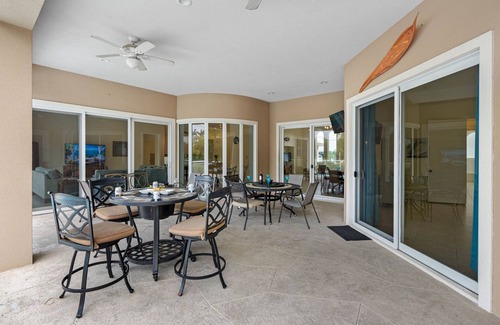 * Multiple balconies & covered lanai – dine alfresco under ceiling fans, fire up the gas grill, or sip sunset cocktails while manatees meander by.