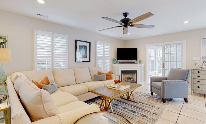 At home, enjoy coffee and cocktails in the sunroom or fire up the gas grill out on the patio and treat your guests to an alfresco meal. The living area provides guests with an open floor plan and includes a comfortable sectional sofa, recliner, and a smart TV to stream your favorite shows and movies. A full suite of stainless steel appliances is equipped for easy at-home meal prep, along with a Keurig coffee maker. Find the epitome of comfort in the main bedroom, equipped with a smart TV, private balcony, and a lovely en suite bathroom. Home essentials include central air-conditioning, free WiFi, and a private washer/dryer.