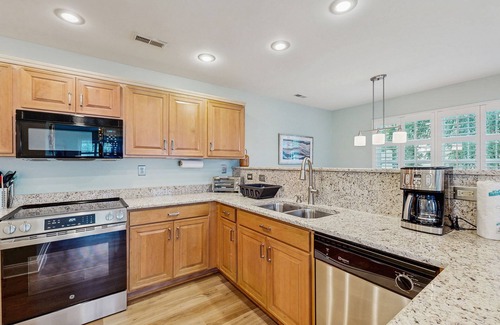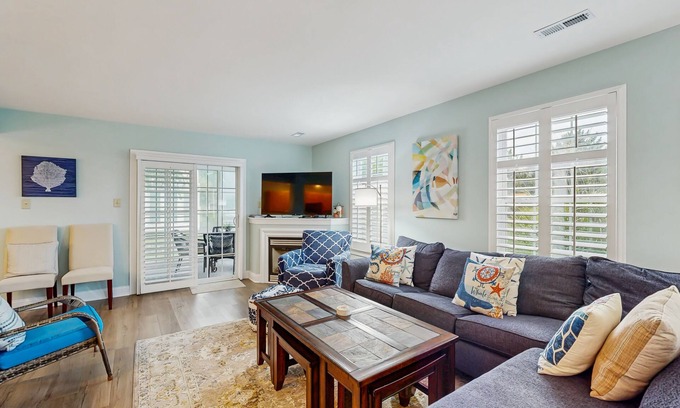 Inside, the townhouse is designed for comfort and relaxation. The spacious living area features a cozy gas fireplace, perfect for unwinding after a day of beachcombing or exploring local attractions. The fully equipped kitchen boasts modern appliances, including a fridge, stove, and dishwasher, making meal preparation a breeze. Enjoy your meals on the deck or patio, complete with outdoor furniture and a gas grill for those delightful summer barbecues.