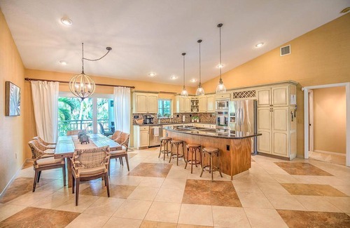Designed for convenience and enjoyment, the property boasts a split floor plan, a screened porch, and a four-car garage, ensuring both privacy and space. For outdoor enthusiasts, the large pool and spa are ideal spots to relax and enjoy the Florida sunshine, while pool heating is available for those cooler evenings. With a barbecue grill and a spacious area for al fresco dining, evenings are perfect for savoring fresh seafood meals and tropical breezes.