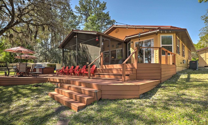 Escape to the lake and experience the Sunshine State when you stay at this charming 3-bedroom, 2-bathroom vacation rental! Boasting a fully equipped kitchen, a furnished deck with a gas grill, and on-site access to Lake Hutchinson, this cozy cabin offers something for everyone. Spend your days grilling out from the deck, splashing around in the lake, or visiting Ravine Gardens State Park. End the night by the fire pit, roasting marshmallows and watching the sunset. The adventure awaits!