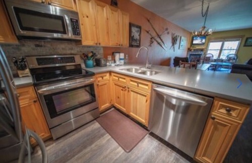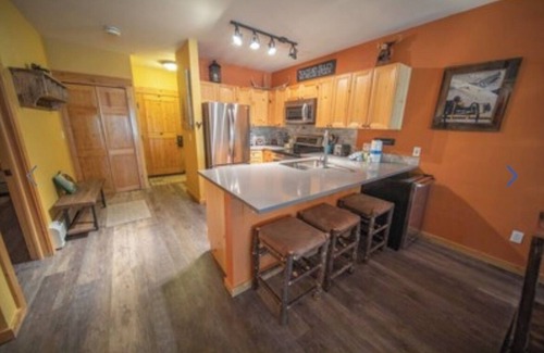 This ground floor condo is perfect for you Colorado mountain getaway! Featuring hardwood floors, stainless steel appliances, private laundry and amazing views from the patio, your group will fall in love with this vacation condo! In door heated parking with EV charging if needed. Hot tubs are right around the corner from rear door.