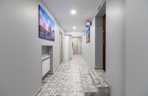 The apartment is located in Kraków at the Kielecka Street on the -0.5 floor. It has a shared hallway with 4 other apartments – there’s some additional equipment in the space, such as a washing machine and a dryer. The building is situated in a very convenient area, away from the bustle of the city center, but close enough to take advantage of all its attractions! The network of public transport is very well-developed in Kraków, so you can easily and comfortably travel around the whole city. Getting to the Main Square will take around 20 minutes on foot, 10 by car, and 5 by streetcar. Kraków offers various attractions, such as museums, walking tours, music clubs, and many more! Some of the must-see places include Wawel Royal Castle, St. Mary's Basilica, and Kraków Cloth Hall. The neighborhood also offers all the necessary urban amenities, such as grocery stores, atmospheric restaurants, and cozy cafes. Additionally, the Botanic Garden of the Jagiellonian University is only a 5-minutes’ walk away! This location is perfect, no matter what you need – a comfortable vacation, touristic exploration of Kraków’s wonders, or simply a relaxing stay in a modern accommodation!