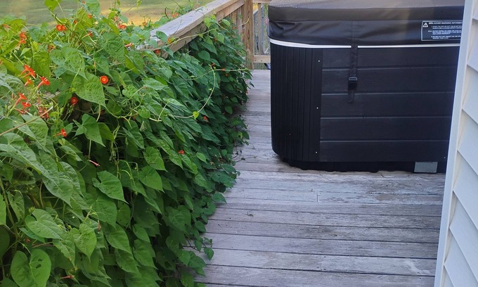 After a day of adventure, unwind in the hot tub, accessible from the side patio, living room sliding doors, or the second queen bedroom.