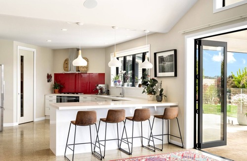 Our villa resides up a private driveway a few minutes bike ride from Kina Beach, a skip from the ice cream shop and a stones through from vineyards, cafes and the great taste bike trail.