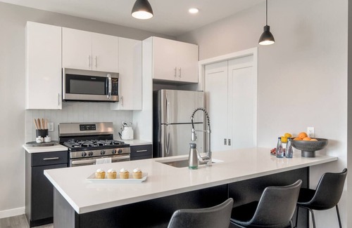 This sunlit apartment, located in a brand-new luxury complex at the center of New Haven’s historic downtown, offers unparalleled comfort, service, and amenities. You can watch a movie on a 4K HDTV, work in the conference rooms, and whip up dinner in a fully-equipped kitchen.