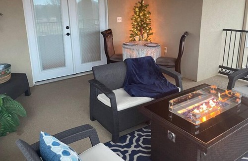 Heavenly Suite is 486 sq. ft. 1 King Bed and 1 Sofa BedSleeps up to 4 People. Non-Smoking Room,Sitting area, Refrigerator, Coffee Maker, Microwave, access to Heated Saltwater Pool from Room, Fireplace in Bedroom and Bathroom,55" Flat Screen TV with Satellite Channels,Premium Bedding and Linens.Bathroom has Walk through Shower with 2 Rain Heads and Body Sprays, seperate Dressing room, Walk-in Closet,Ironing Board,Jacuzzi, Double Sinks, Designer Toiletries, Hairdryer, and Premium Towels.