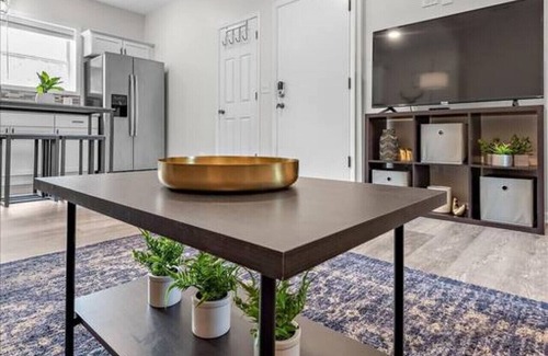 The kitchen and living room area are bright, with brand new appliances and a gas range. The full kitchen is stocked with everything you’ll need for whipping up delicious meals during your stay.