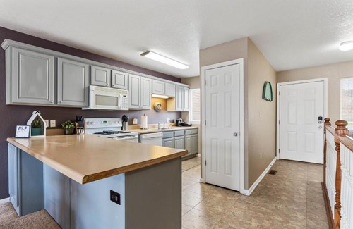 King Bed, Garage and Free Parking, Scenic Deck KMN1213 is located in Manhattan, just 23 miles from Louisville-Jefferson County Metro: Waterfront Park and 3.3 miles from Bill Snyder Family Football Stadium. This vacation home features air-conditioned accommodations with a patio. The property offers a 24-hour front desk. With free Wifi, this 3-bedroom vacation home provides a TV, a washing machine, and a fully equipped kitchen with a dishwasher and oven. The accommodation is non-smoking. The nearest airport is Manhattan Regional Airport, 4.3 miles from the vacation home.
