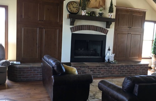 The television is in the living room for community use. The kitchen, dining table and family room are all one large area for your enjoyment. It connects to the patio where there is a bbq, a fireplace and a dining table that seats six, all with a fabulous view of the Yakima Valley. Garage parking is available if needed.